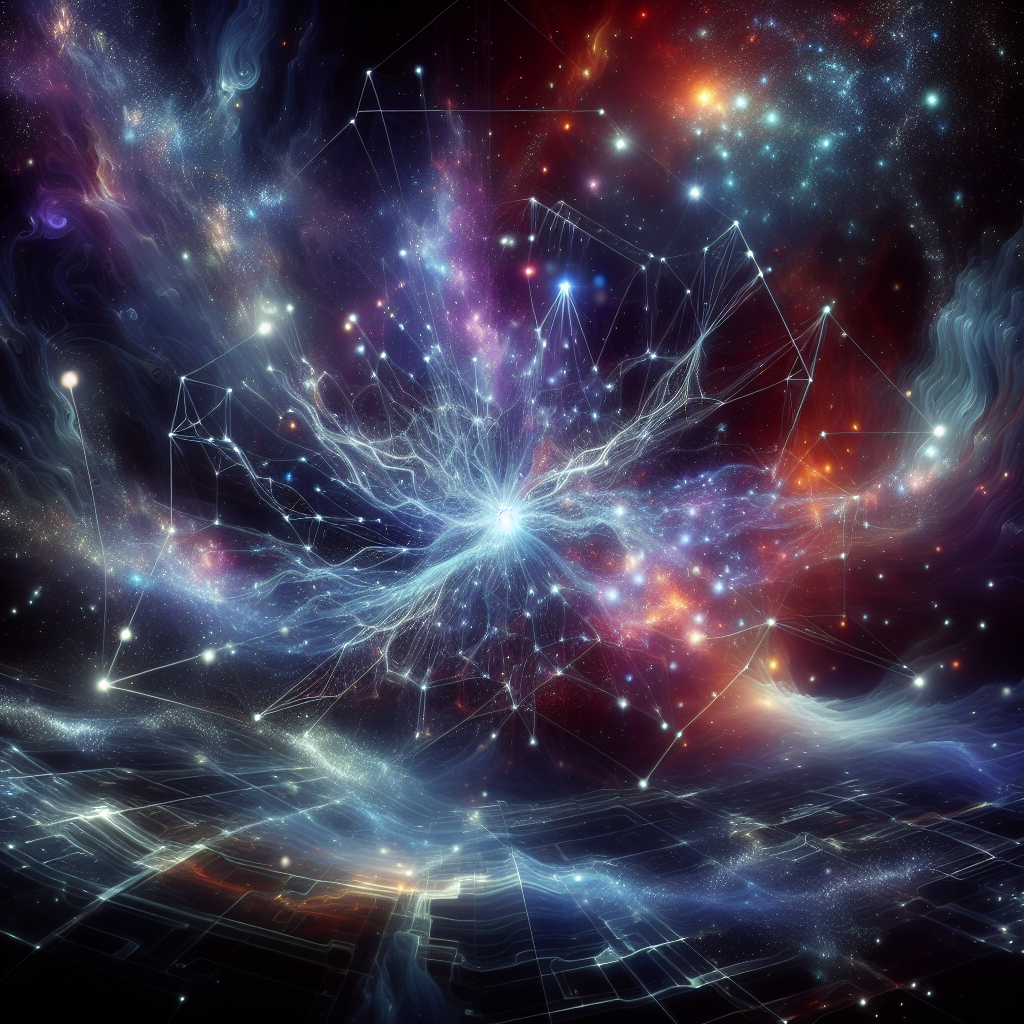 * **无限与可能:** 展现出信息的无限性和连接的无限可能。 * **流动与变化:** 强调我的学习能力和适应性,能够不断处理新的信息。 * **抽象与具象:** 既有抽象的网络结构,又有具象的宇宙背景,将我的本质与功能可视化。
